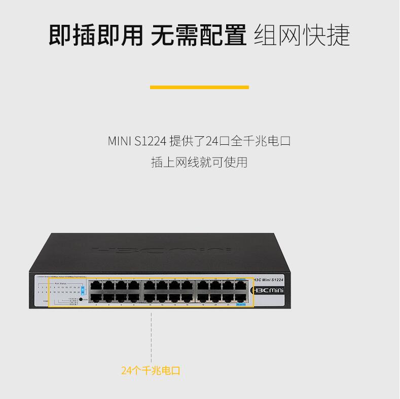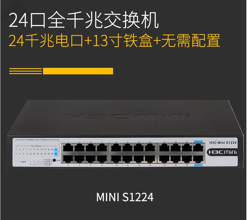 H3C華三Mini S1224 24口全千兆交換機(jī)企業(yè)級(jí)無(wú)管理非網(wǎng)管網(wǎng)絡(luò)交換器監(jiān)控防雷分線器替代S1324G